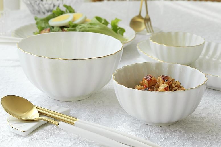 Cotton: là sự liên tưởng nhẹ nhàng đến sợi bông gòn mong manh cùng mới tone màu trắng mang lại cảm giác ấm áp, tinh khiết. Bộ bát ăn “Cotton” cao cấp và thanh lịch thiết kế vừa mang hơi hướng cổ điển vừa mang tinh thần hiện hiện đại với viền mạ vàng.