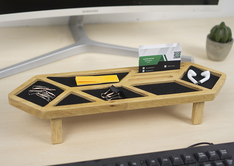 - Công năng: Là mẫu kệ/khay để đồ dùng văn phòng trên bàn làm việc giúp tiết kiệm và decor không gian làm việc.