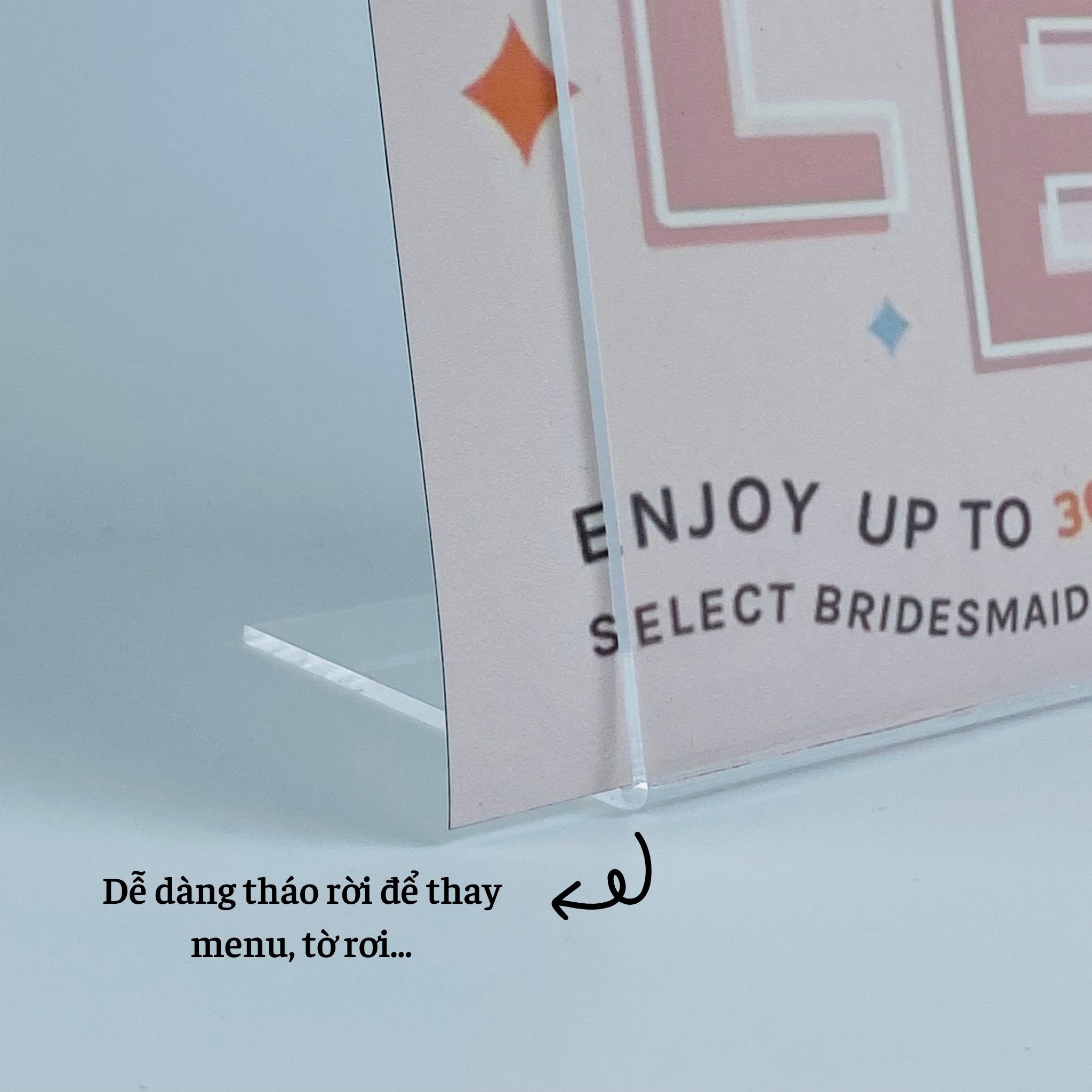 Kệ menu mica để bàn, Kệ menu mica để bàn trưng bày, trong suốt, nhiều kích thước #menu #menumica