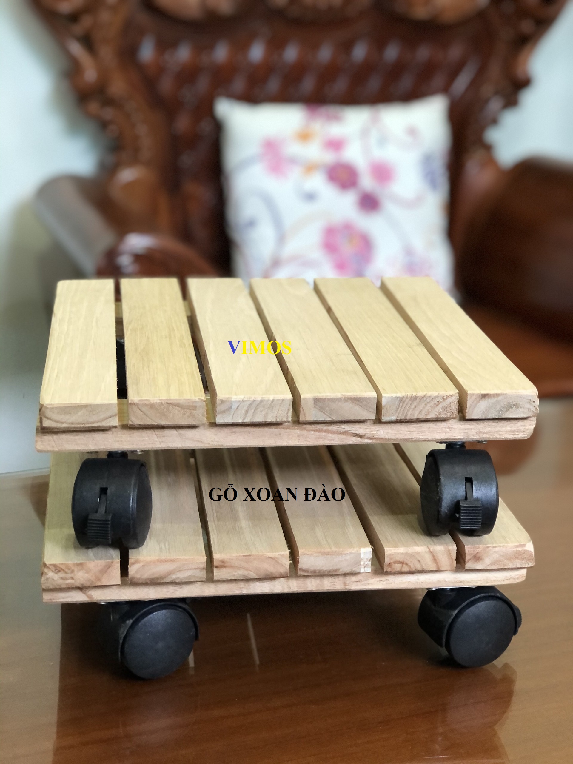 Kệ làm từ gỗ xoan đào, cao cấp hơn các loại kệ bằng gỗ tràm thông thường.Mỗi tấm ván dày 17mm( cũng dày hơn các loại đang bán trên thị trường là dày 10mm) nên đem đến sự chắc chắn và an tâm cho quý khách. Kích thước : 30 x 30 cmx cao 9.5 cm Với 4 bánh xe có thể xoay 360 độ dễ dàng di chuyển chậu hoa, chậu cây cảnh bất cứ hướng nào mà bạn mong muốn. Giúp giữ chậu hoa đúng vị trí và chống trơn trượt. Bánh nhựa chống trầy xước sàn gỗ, gạch hoặc thảm. Giúp di chuyển dễ dàng cho việc dọn dẹp quét dọn, lau sàn nhà.