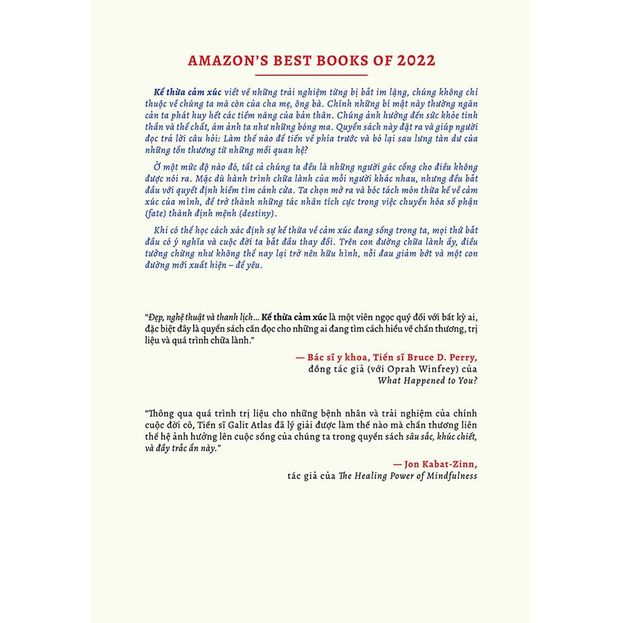 “Thông qua quá trình trị liệu cho những bệnh nhân và trải nghiệm của chính cuộc đời cô, Tiến sĩ Galit Atlas đã lý giải được làm thế nào mà chấn thương liên thế hệ ảnh hưởng lên cuộc sống của chúng ta trong quyển sách sâu sắc, khúc chiết, và đầy trắc ẩn này.”