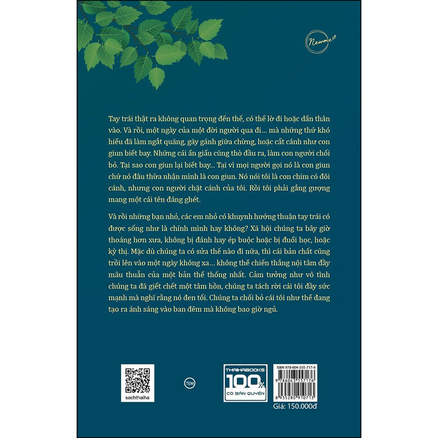 - Mối quan hệ Trích đoạn hay Một sự biết ơn sâu sắc đến Ba Má – sinh ra tôi là người thuận tay trái. Vâng, tất nhiên cả cuộc đời tôi sẽ chỉ sống trong thế giới của mình. Một con cá bơi ngược dòng, một con chim phản lại trọng lực của Trái đất, một kẻ khác biệt trong thế giới, một người khác thường mãi mãi cũng không thể suy nghĩ điều gì hoặc nhìn theo cách của số đông được. Vô hình, đơn độc trong hành trình cuộc đời mình. Đó cũng là lý do khiến tôi không khuất phục trước bất kỳ một quyền lực nào, tôn giáo nào, một chủ nghĩa nào, một sự phân biệt nào, một ranh giới nào. Có lẽ, tận sâu trong tâm hồn tôi đã nhận ra có rắc rối nào đó mà con người chúng ta chưa thấy hết và tất nhiên vẫn sống trong một thế giới mà ở đó mọi thứ cứ thế mơ hồ và quay cuồng. Một cuộc đời chỉ để trở nên đáng sống một cách trần tục, và lao động như một người sáng tạo. Nếu tự do không phải là lý do để tiếp tục thì sự cố gắng chỉ là đang cố gắng không phải là đang rong chơi. Thế thì sao không chọn rong chơi trong sự sống để có thể tự biến mình thành một dạng nào đó mà mình muốn, không cho phép sự ràng buộc đóng đinh. Một điều kỳ diệu của bông hoa được mọc lên từ một thân cây, hoặc những trái trên cành, được biến dạng vươn ra từ thân cây cằn cỗi, thì sao đó không phải là sự sống của Thượng đế! Hạnh phúc sản sinh ra khi người ta đi đến điểm vô cùng, vô cùng đầy đủ, vô cùng thấu hiểu, vô cùng yêu thương. Không cần phải chống cự gì cả, đón nhận những gì xảy ra xem đó là một việc cần thiết hiển nhiên của sự tồn tại. Đón nhận tác động của vũ trụ đến con người, thả cho tâm hồn sự ngẫu nhiên của tự nhiên. Đợi một chút – đến trễ một chút – sai một chút – ngớ ngẩn một chút. Chẳng sao, rồi mọi thứ cũng ổn. Điều đó là thước đo cho giá trị khi nhìn lại bản thân, và tự hào về những điều mình đã làm! Tôi cho rằng, con người không hoàn toàn bị lệ thuộc hoặc định đoạt bởi số phận, mà ngược lại còn tự quyết định họ sẽ trở thành ai. Con người đơn giản là tồn tại và quyết định mục đích cho sự tồn tại của mình. Dựa vào thực nghiệm hoài nghi trải nghiệm thực tế, mới rút ra những chi tiết trong các vấn đề. Khả năng hiểu được tình huống mà tại đó ta đưa ra quyết định. Khi một tâm trí đã hình thành lối bảo thủ, tâm trí đó không sẵn sàng tiếp nhận những gì mới mẻ xung quanh, vì nó thật sự là cái mà ta không mong đợi. Nỗi lo tiềm ẩn mang tới rủi ro, rồi phải giải quyết rủi ro đó. Bằng cách né tránh đóng khung sự tiếp cận. Đôi khi bỏ lỡ những món quà Thượng đế trao tặng, những bài học quý giá, bỏ qua luôn những điều khó hiểu. Sự ngẫu nhiên núp bóng dưới vỏ bọc bằng hình thức khác, thử thách niềm hứng thú kiên nhẫn của chúng ta. Một tâm trí đẹp sẽ không cho phép và thu hút những điều mà tâm trí đó không mong muốn, tất cả những gì ta gặp nó đang cộng hưởng với năng lượng bên trong. Trên con đường đi của những hành động, những lời nói, những ý nghĩ của con người khi thì như những cơn sóng, khi thì ồn ào lúc im lặng. Cái bản ngã bị cảm xúc khống chế được dâng lên bởi trí tưởng tượng mông lung, những cái nhói tim đau thắt đó làm cho đầu óc quay cuồng, nóng ran như muốn tan chảy. Bản ngã là thứ xa lạ mà trước đây chưa từng hiểu, giây phút đó cũng không thể hiểu. Rũ bỏ, dọn dẹp mọi thứ, nhận ra những thứ xung quanh thực tế không có thật. Thế giới chúng ta đang sống có thể không có thật. Tất cả chỉ là cảm giác! Công ty CP Sách Thái Hà trân trọng giới thiệu!