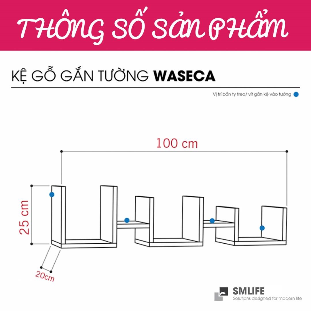 Mua tại TiktokMang đậm phong cách nội thất đơn giản, kệ gỗ trang trí gắn tường Waseca là một sự bổ sung hoàn hảo cho căn hộ hay văn phòng của bạn. Kệ gỗ Waseca được thiết kế theo phong cách đơn giản, hiện đại giúp bạn thoải mái trang trí sách hay các vật dụng trang trí an toàn. Sử dụng vật liệu ván ép công nghiệp MDF chống ẩm phủ Melamine cao cấp giúp kệ gỗ trang trí SMLIFE có độ bền cao, chống trầy và chống ẩm rất tốt. Bạn có thể tự lắp đặt sản phẩm dễ dàng với các phụ kiện và hướng dẫn đi kèm.