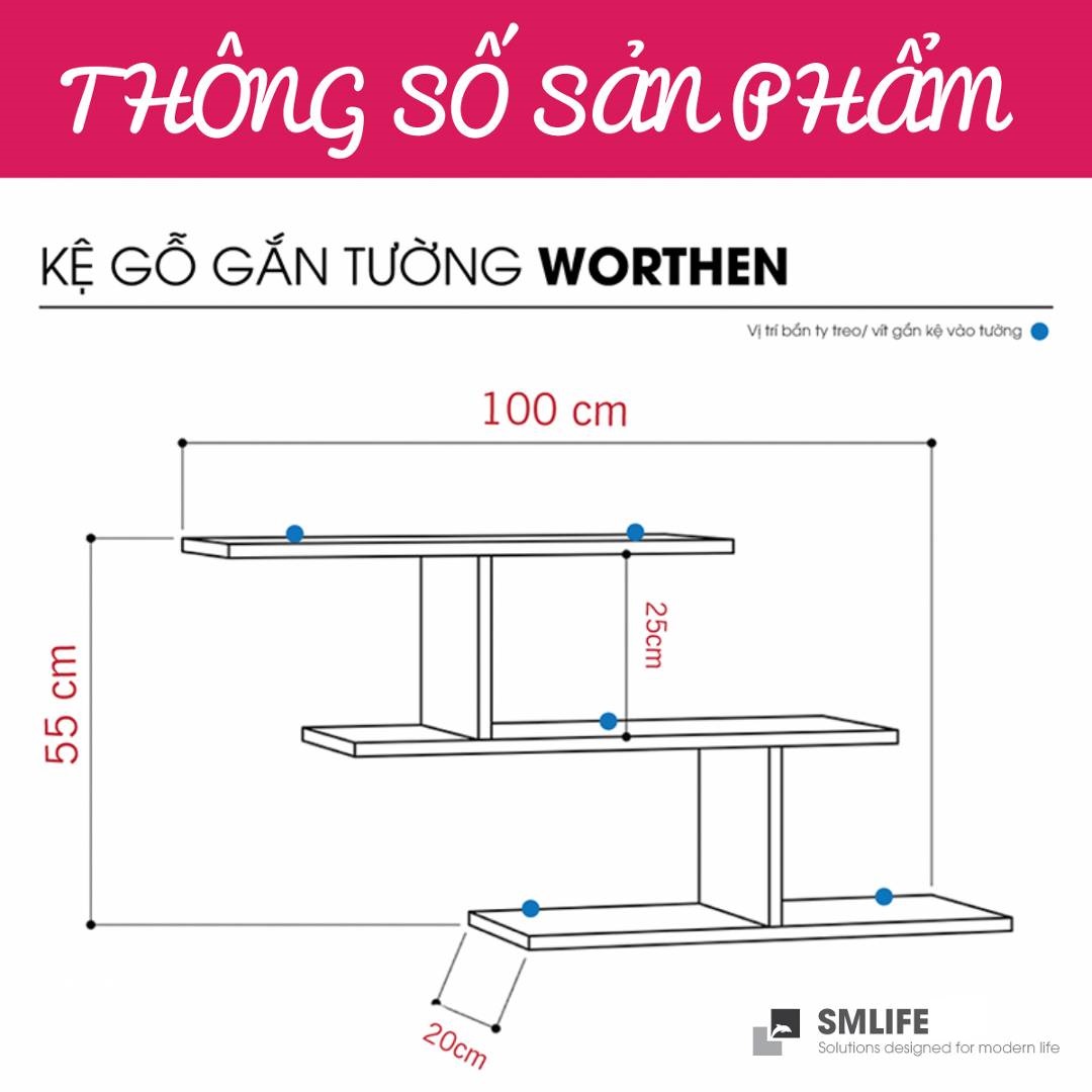 Mua tại TiktokMang đậm phong cách nội thất đơn giản, kệ gỗ trang trí gắn tường Worthen là một sự bổ sung hoàn hảo cho căn hộ hay văn phòng của bạn. Kệ gỗ Worthen được thiết kế theo phong cách đơn giản, hiện đại giúp bạn thoải mái trang trí sách hay các vật dụng trang trí an toàn. Sử dụng vật liệu ván ép công nghiệp MDF chống ẩm phủ Melamine cao cấp giúp kệ gỗ trang trí SMLIFE có độ bền cao, chống trầy và chống ẩm rất tốt. Bạn có thể tự lắp đặt sản phẩm dễ dàng với các phụ kiện và hướng dẫn đi kèm.