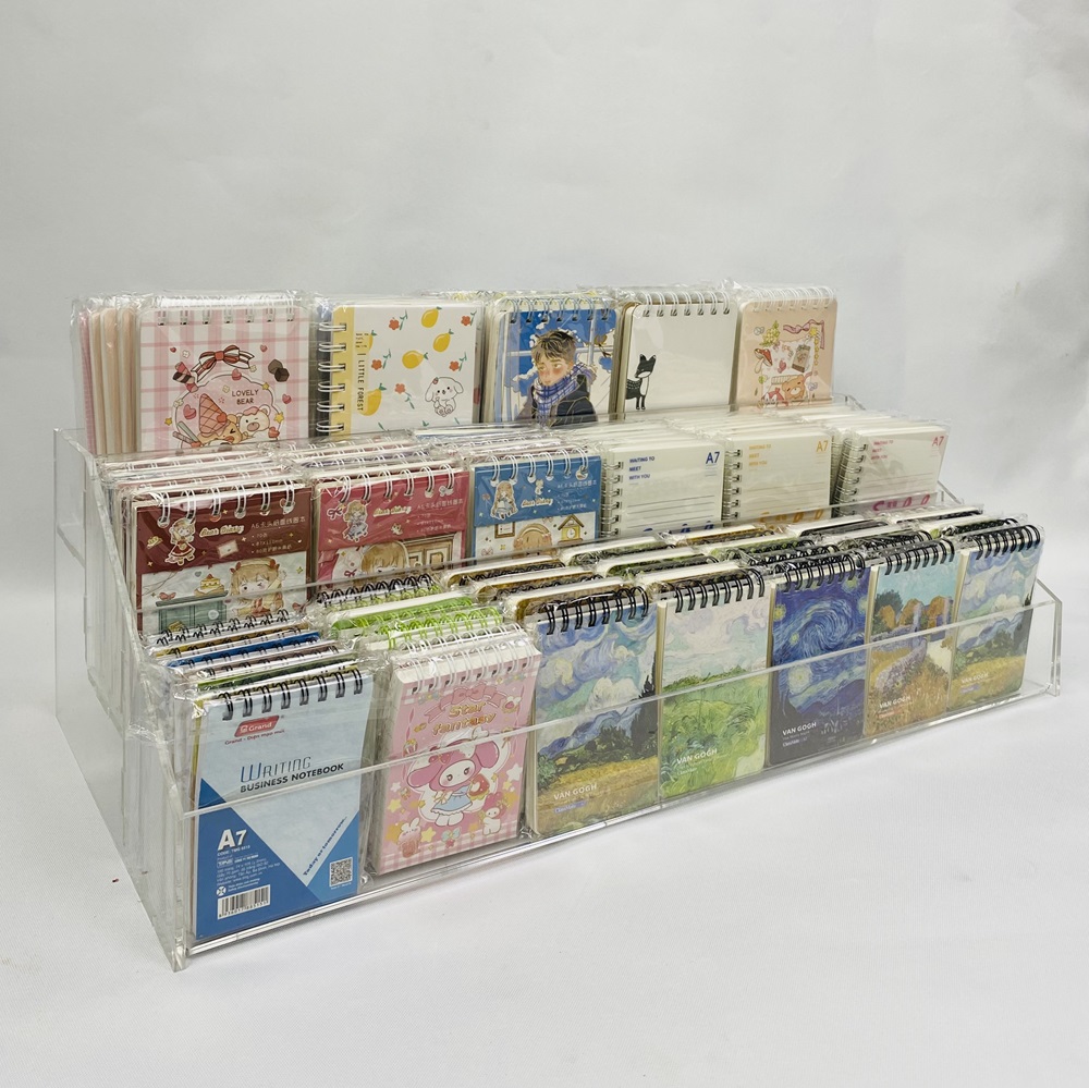Kệ trưng bày sổ mica Enter TBNS12 3 tầng có thiết kế đơn giản thích hợp trưng bày các loại sổ tập, nước hoa, mỹ phẩm... mang đến sự gọn gàng và ngăn nắp cho không gian trưng bày.