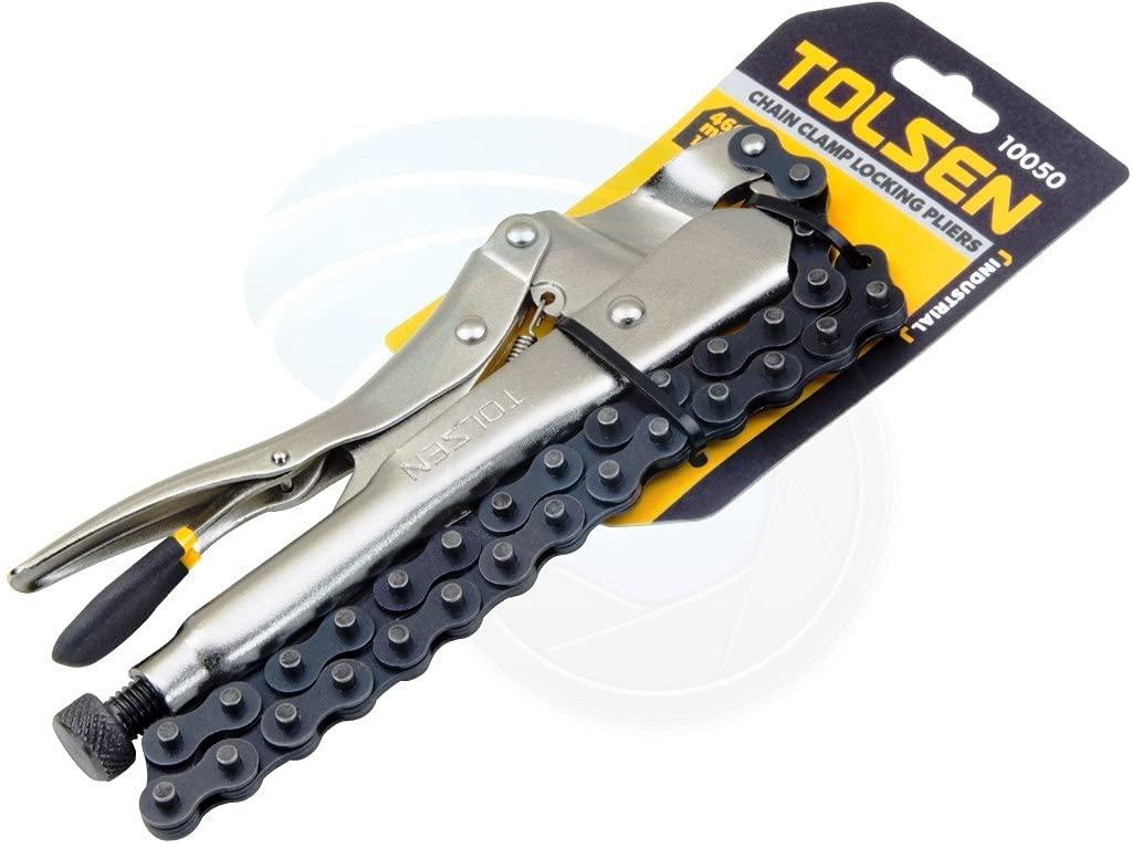 Kềm bấm xích 10 inch Tolsen 10050 là dụng cụ cầm tay chuyên dùng để bấm, kẹp, giữ, tháo mở hoặc vặn siết các loại ống nhựa, tuýp sắt, những vật dụng hình trụ có kích cỡ khác nhau, đặc biệt là các loại ống có đường kính lớn.