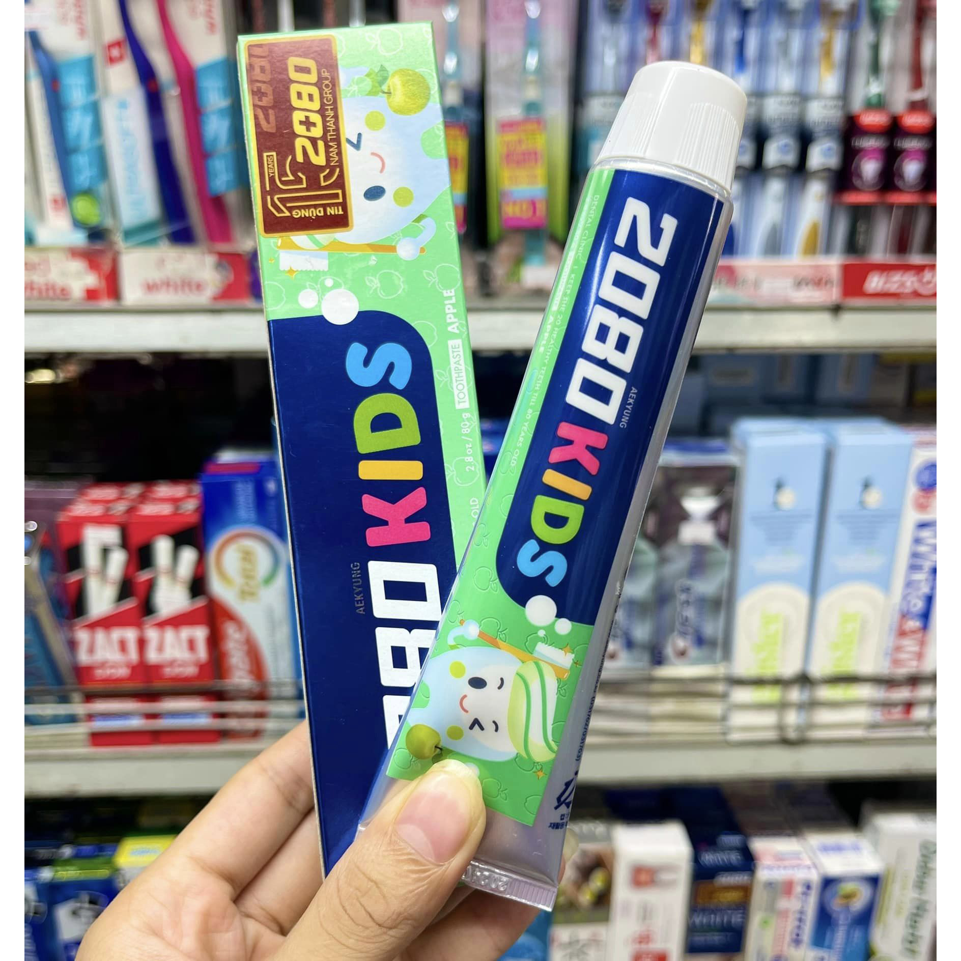 KEM ĐÁNH RĂNG TRẺ EM CAO CẤP HÀN QUỐC 2080 KIDS(Tinh chất hương Táo)Kem đánh răng dành cho trẻ em chứa Flour, Xilitol, Vitamin và Canxi rất tốt đối với trẻ nhỏ ngăn ngừa sâu răng giúp cho răng khoẻ mạnh. Với sự phát triển của công thức đặc biệt có trong kem đánh răng DC 2080 sẽ giúp cho răng của trẻ ngăn ngừa tối đa các vi khuẩn gây hại và phát triển bền vững chắc khoẻ.