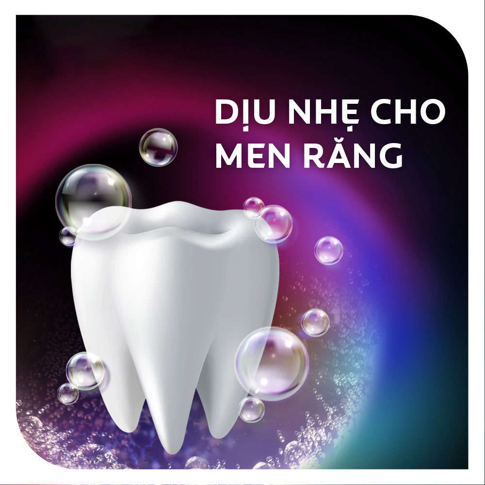 - Trải nghiệm làm TRẮNG RĂNG đột phá với công nghệ cải tiến từ hàng triệu bong bóng Oxy hoạt tính cho cảm giác ấm dần khi đánh răng cùng lớp bọt siêu mịn.