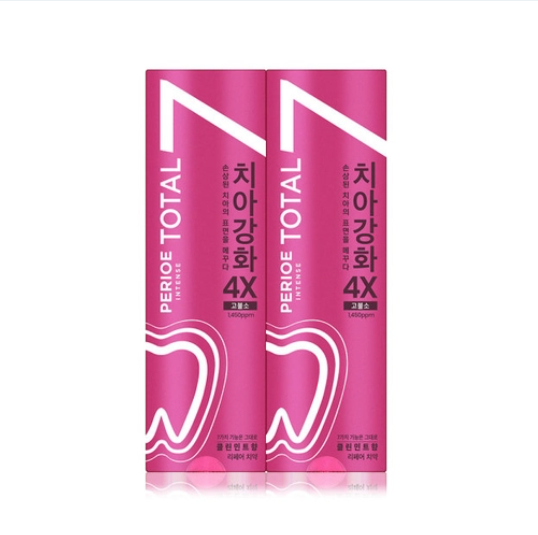 Kem Đánh Răng Perioe Total7 Intense Original Repair Toothpaste 120g  là sản phẩm chăm sóc răng miệng đến từ thương hiệu Perioe. Có tác dụng ngăn chặn và ngăn ngừa sâu răng bằng cách nhanh chóng trung hòa nhanh chóng quá trình axit hóa (bởi thức ăn, sâu răng,..) trong khoang miệng với thành phần kiềm. Cho răng luôn thơm mát, khỏe mạnh và trắng sáng. KEM ĐÁNH RĂNG PERIOE TOTAL7 INTENSE  REPAIR  vị nguyên bản bảo vệ men răng gấp 4 lần nhờ công thức độc quyền bổ sung canxi và phospho, lấp đầy khoảng trống ở răng bị hư hỏng, hạn chế tình trạng sâu răng và bị ố màu. Đối tượng sử dụng:  Muốn ngăn ngừa sâu răng, bảo vệ sức khỏe răng miệng. Ưu thế nổi bật: Kem Đánh Răng ngăn chặn và ngăn ngừa sâu răng bằng cách trung hòa nhanh chóng quá trình axit hóa (bởi thức ăn, sâu răng,..) trong khoang miệng với thành phần kiềm. Kem đánh răng loại bỏ hiệu quả những vết ố do mảng bám thức ăn trên răng và phục hồi độ trắng tự nhiên cho răng. Sản phẩm giúp khử mùi hôi miệng và giữ cho răng luôn chắc khỏe, trắng sáng. Sản phẩm gồm 4 phiên bản 4 màu sắc cho khách hàng lựa chọn Nhập khẩu và phân phối chính hãng độc quyền tại VN