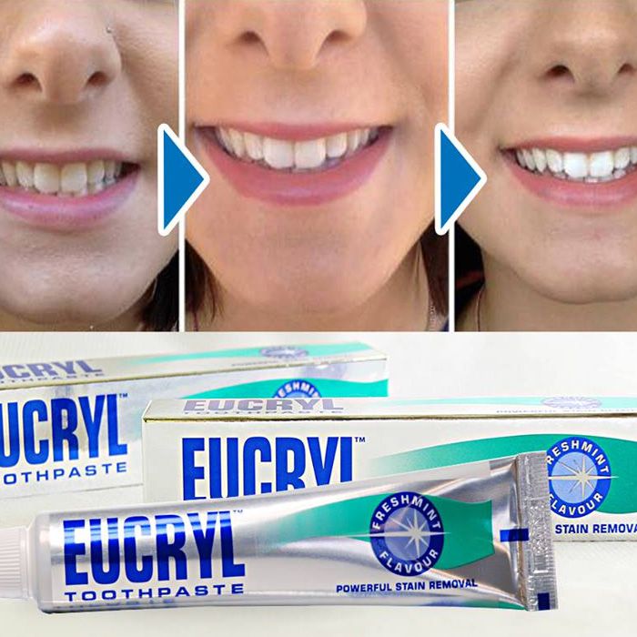 - Kem đánh răng trắng răng Eucryl Tooth Paste giúp làm trắng răng hiệu quả. Ngoài ra sản phẩm Eucryl còn có công dụng giúp hơi thở thơm mát và tránh việc hình thành các mảng bám trên răng.