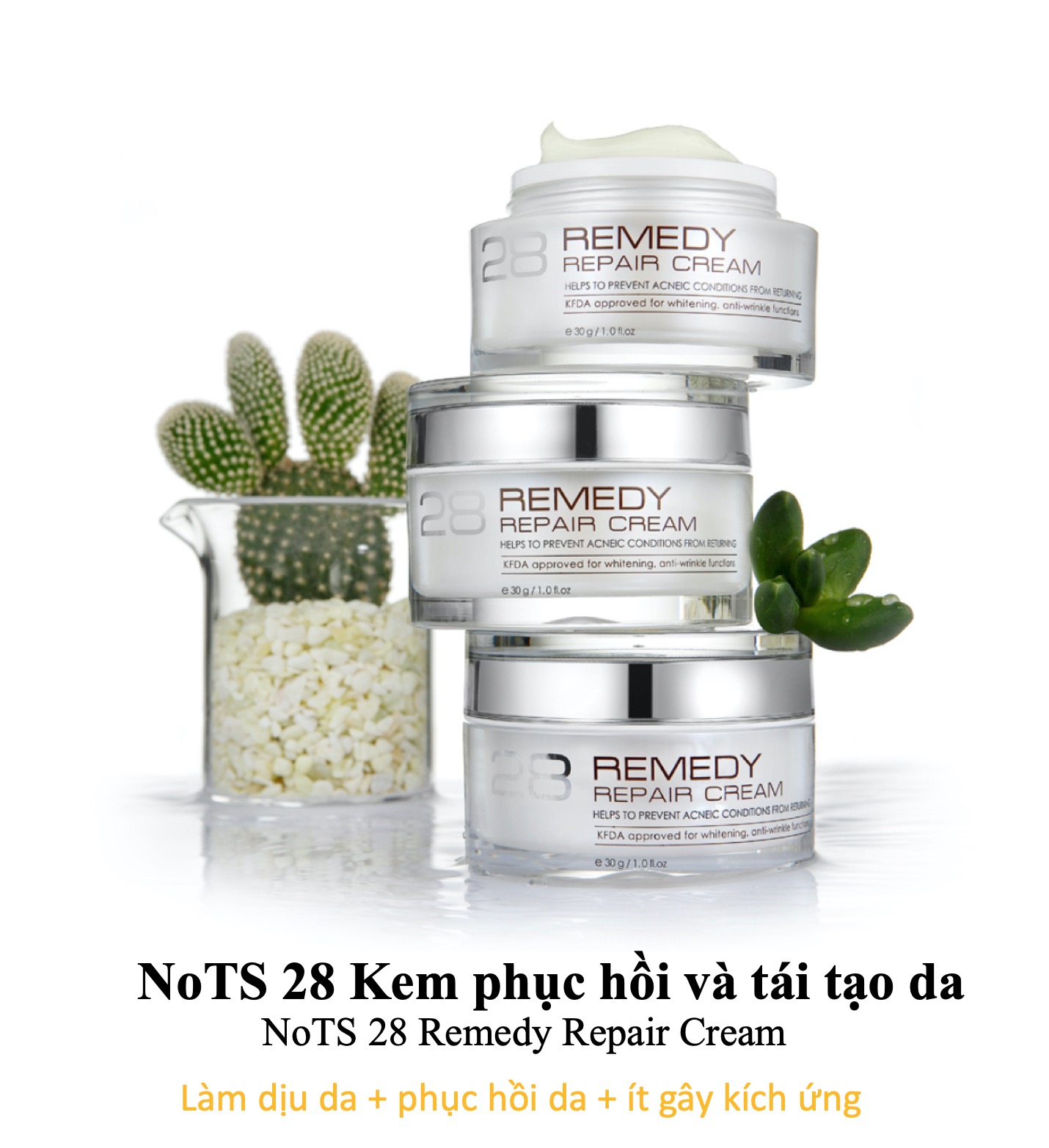 Kem dưỡng đặc trị NoTS 28 Remedy Repair Cream ứng dụng công nghệ mới với chiết xuất cây xương rồng giàu chất Aquaporin có tác dụng cung cấp độ ẩm tối ưu và làm mát da