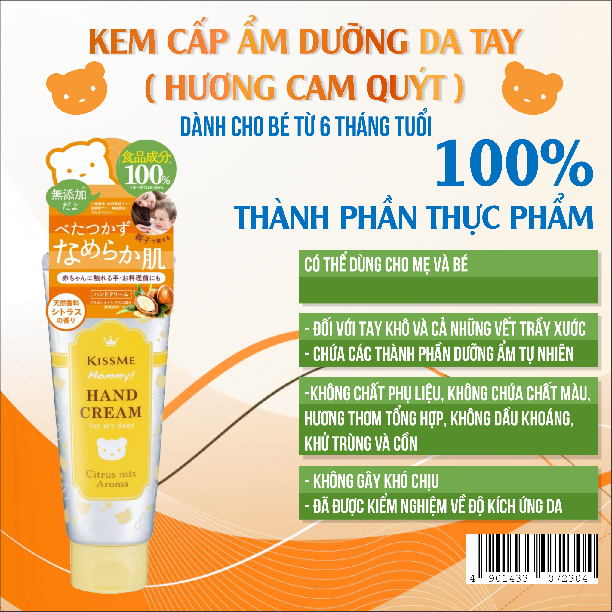 Kem Dưỡng Da Tay Cấp Ẩm Hương Cam Chanh Dành Cho Bé Từ 6 Tháng Tuổi Và Làn Da Nhạy Cảm Kissme Mommy Hand Cream C