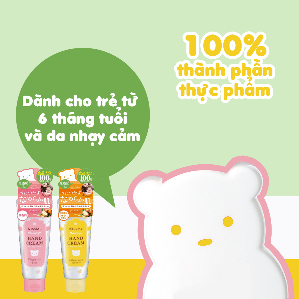Kem Dưỡng Da Tay Cấp Ẩm Hương Cam Chanh Dành Cho Bé Từ 6 Tháng Tuổi Và Làn Da Nhạy Cảm Kissme Mommy Hand Cream C Thông tin sản phẩm: Số Lô: In trên