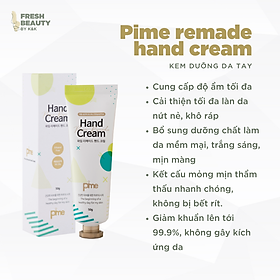 Kem dưỡng da tay dưỡng ẩm làm thơm mềm da, cải thiện nứt nẻ, khô ráp, dưỡng da trắng sáng mịn màng Pime Remade Handcream 50g. Kem tay có thành phần lành tính giúp dưỡng ẩm và dưỡng da trắng sáng mềm mịn, căng mướt