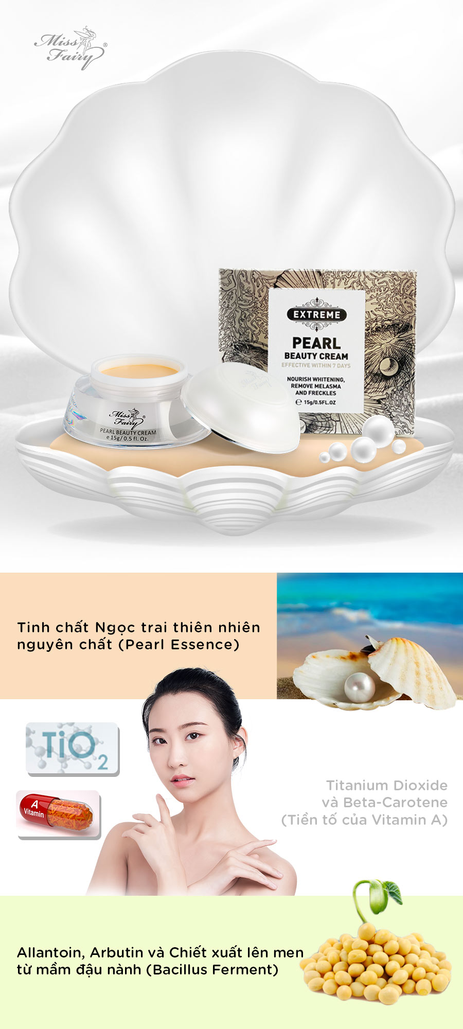 Kem dưỡng trắng da giảm nám, tàn nhang tinh chất Ngọc Trai Miss Fairy – Bí quyết dưỡng da trắng đẹp tinh khiết hoàn hảo Chắt lọc tinh hoa dưỡng da từ Ngọc trai thiên