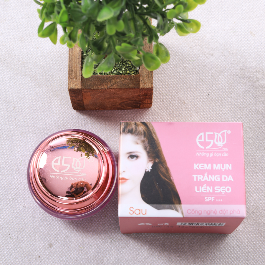 Với công thức không dầu, lâu trôi lên đến 8 giờ và mềm mại với da nhạy cảm, Kem mụn trắng da liền sẹo E5 chiết xuất từ Ngọc trai, Nghệ giúp cân bằng quá trình tiết bã nhờn, làm da giảm sưng tấy, giúp mụn se khô và nhanh chóng giảm dần các loại mụn: trứng cá, mụn bọc, mụn mủ, mụn đầu đen… mà không để lại sẹo thâm. Giúp cải thiện làn da, che khuyết điểm một cách hoàn hảo những vết sẹo, tàn nhang, mụn… giảm quầng thâm ở mắt và mụn hiệu quả, duy trì màu da tự nhiên mà không để lộ bất kỳ vết sẹo hay tì vết nào. Có tính năng làm thông thoáng lỗ chân lông, làm mịn da, giúp phòng ngừa mụn tái phát, dưỡng ẩm và trắng da, cùng với hoạt chất chống nắng nên đây sẽ là một sự lựa chọn tiện dụng cho các bạn.