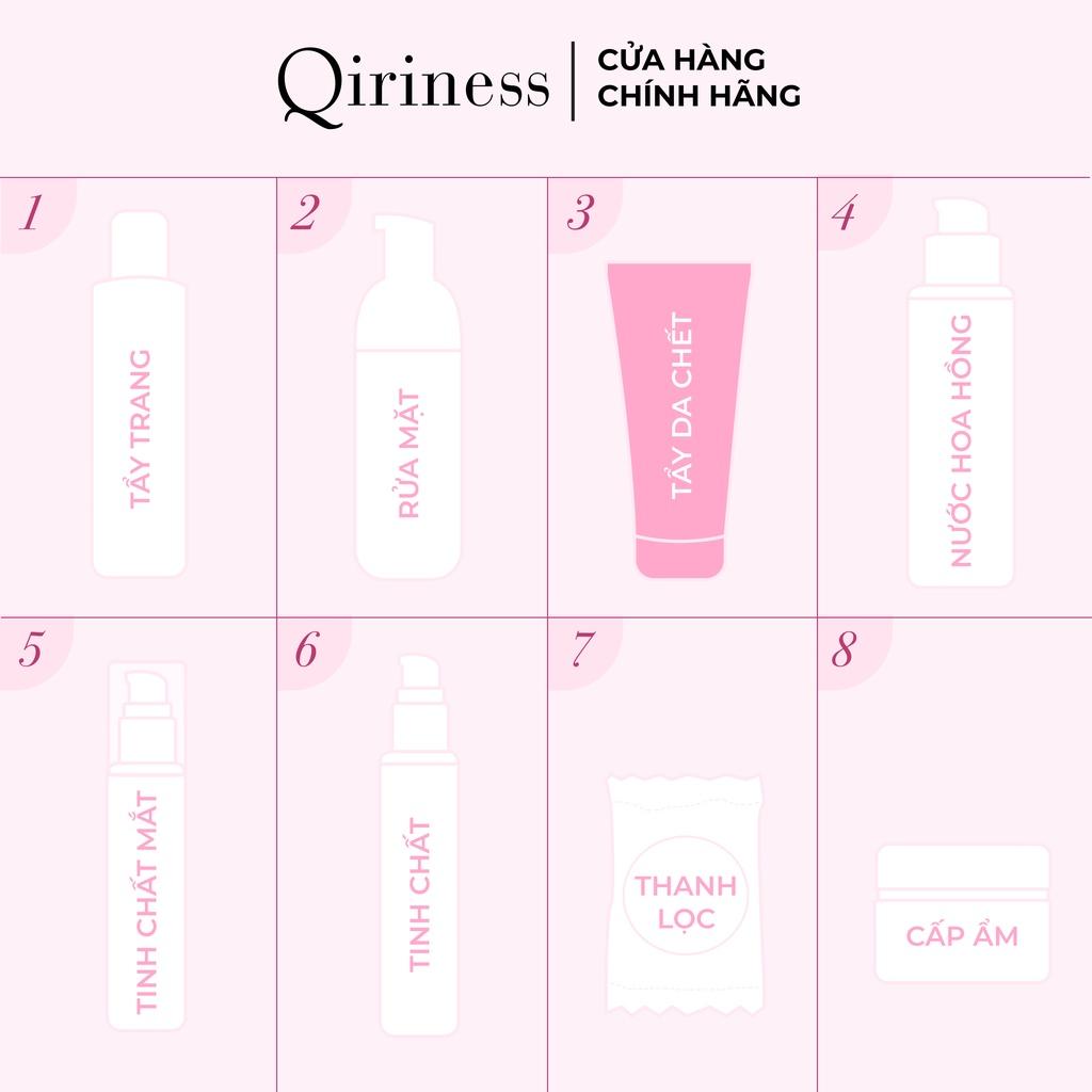 ĐỐI TƯỢNG: Dùng cho mọi loại da, da xỉn màu. TÁC ĐỘNG SINH HỌC: ĐỘ AN TOÀN: Không gây kích ứng Không chứa paraben Không chứa xà phòng Dùng được cho da mặt, mắt và môi Dung nạp tối ưu cho da HƯỚNG DẪN SỬ DỤNG: Cách 1: Dành cho mọi loại da. Lấy lượng kem tương đương chiều dài ngón trỏ, sau đó thoa đều lên toàn bộ khuôn mặt, tránh vùng mắt. Để trong 2 phút, sau đó nhẹ nhàng mát-xa mặt theo chuyển động tròn cho đến khi lớp kem bong ra rồi rửa sạch bằng nước ấm. Sử dụng 1-2 lần mỗi tuần. Cách 2: Dành cho da nhạy cảm hoặc lão hoá. Để trong 3 phút, sau đó rửa sạch bằng nước ấm. Nếu cần, mát-xa các vùng như trán, mũi và cằm. Mẹo: Đối với mụn đầu đen, hãy thoa lên các khu vực có xuất hiện mụn đầu đen khi bạn tẩy da chết. Lặp lại 2 ngày một lần. THÀNH PHẦN: VỀ QIRINESS: Qiriness mang đến liệu pháp chăm sóc da như ở spa trong chính ngôi nhà của bạn, với thành phần tự nhiên, đem lại hiệu quả thấy rõ ngay lập tức. Các sản phẩm dược mỹ phẩm của Qiriness là sự kết hợp của công thức từ Pháp, công nghệ cao từ Thụy Sỹ và sự cải tiến không ngừng của Hàn Quốc. Qiriness được thành lập năm 2004 bởi Mi-Ryung Beilvert–người có niềm đam mê với thẩm mỹ, làm đẹp và sức khỏe trong suốt hơn 20 năm. Có mặt trong tất cả các công thức của Qiriness, phức hợp EOS là sự kết hợp độc quyền của 3 thành phần hoạt tính. Nó giúp thúc đẩy hiệu quả của việc trao đổi chất ở tế bào, tăng cường các đặc tính của các thành phần hoạt chất vì thế da có thể hưởng toàn bộ những lợi ích từ các hoạt chất. Sản phẩm của Qiriness được các chuyên gia khuyên dùng với độ an toàn & hiệu quả tối ưu, đáp ứng các nhu cầu chăm sóc da ở mọi lứa tuổi. Dung tích: 75ml Xuất xứ thương hiệu: Pháp Nơi sản xuất: Thụy Sĩ Hạn sử dụng: 3 năm kể từ ngày sản xuất