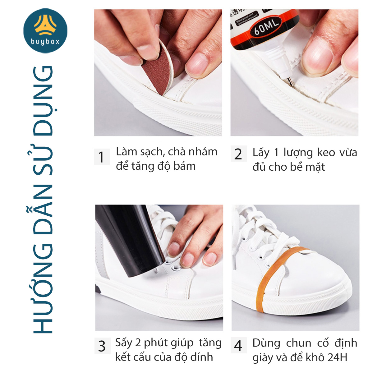 Keo Dán Giày Dép Chuyên Dụng 60ml – Keo Dán Giày Siêu Dính, Dính Chắc, Kèm Phụ Kiện 1. Đặc Điểm Nổi Bật: - Dễ dàng sử dụng: Các bước sử dụng đơn giản ngay