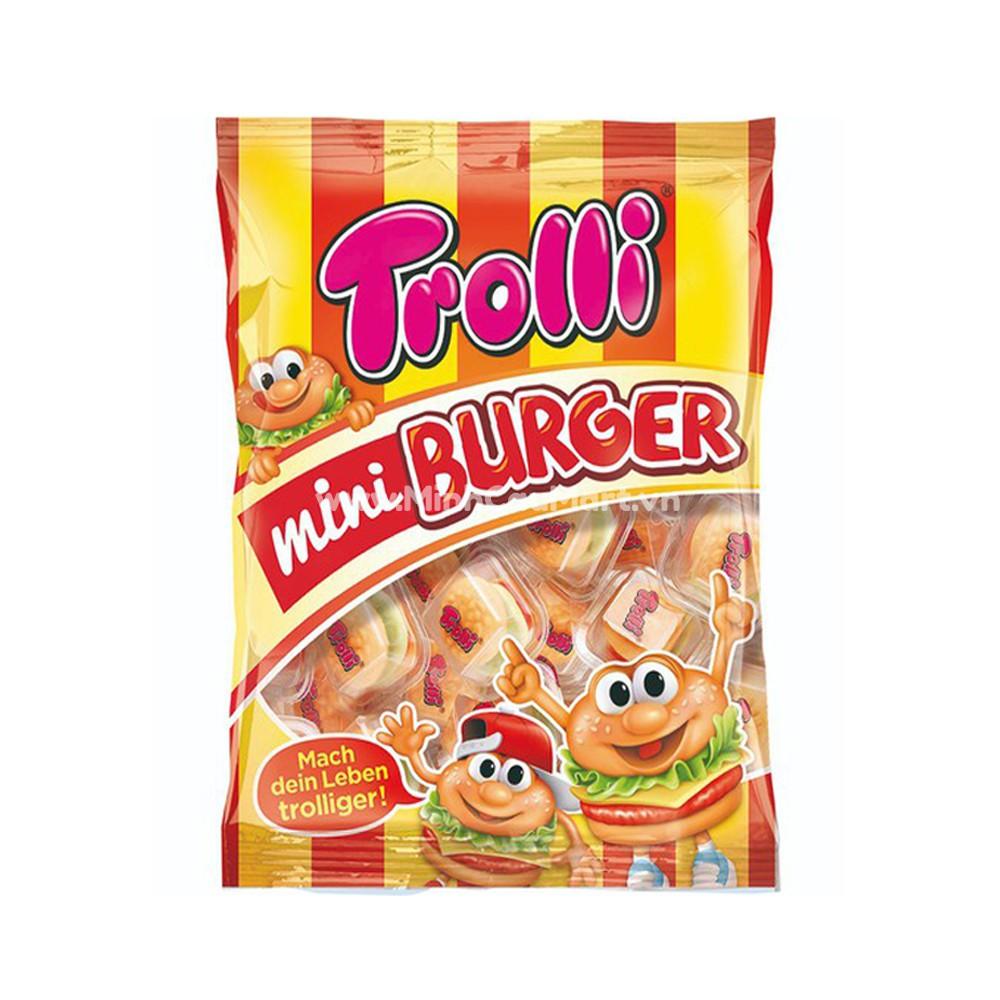 Kẹo dẻo Trolli Mini Burger 600gr Để nói về những thương hiệu tên tuổi trong phân khúc kẹo dẻo, thì Trolli chắc chắn sẽ là cái tên được các tín đồ ăn uống trên thế