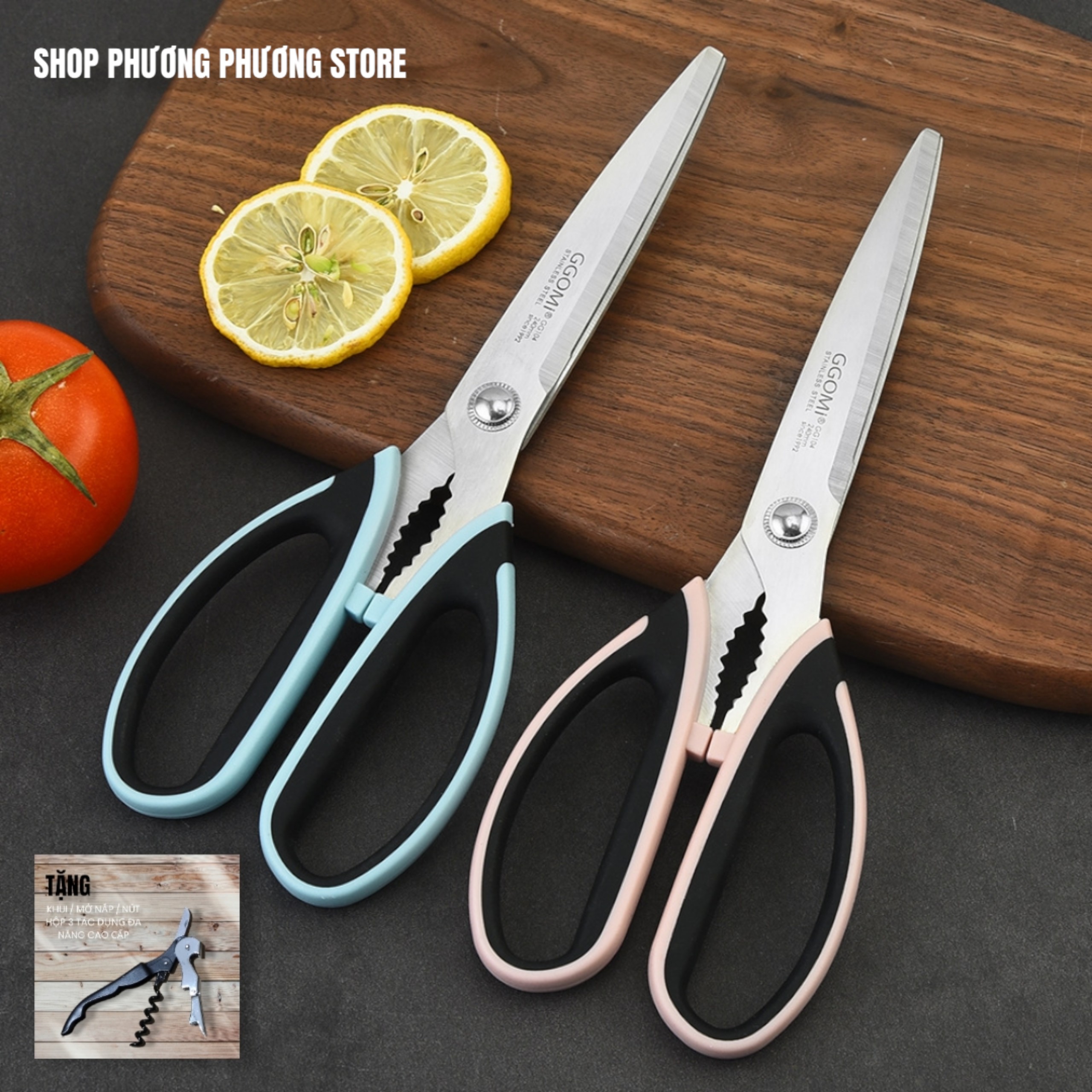 ✨Kéo Hàn Quốc Nhà Bếp Kéo Cắt Gà Cắt Đồ Đa Năng Cao Cấp ( Tặng Khui Hộp 3 in 1 )
