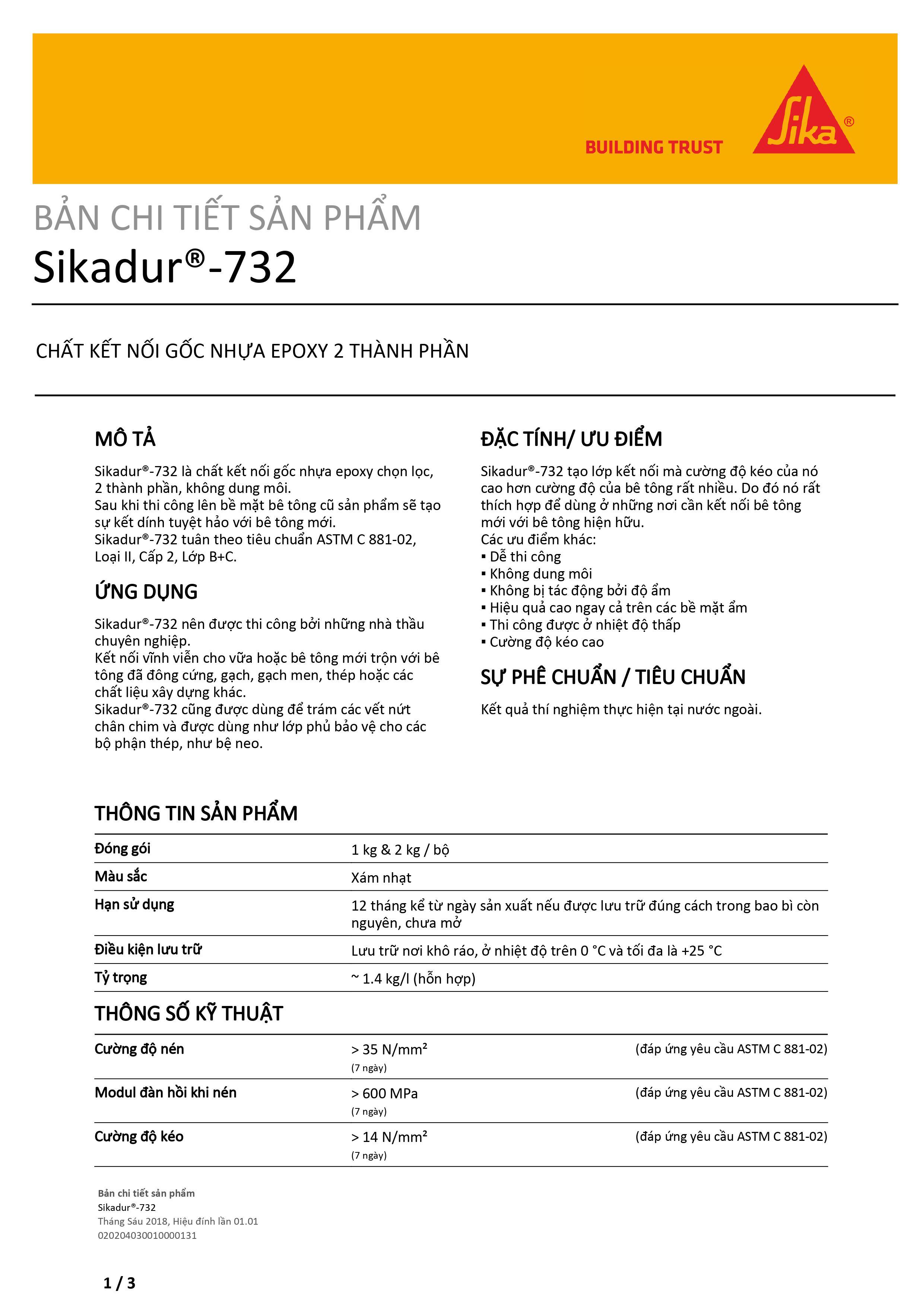 Mô tả: Sikadur 732 kết nối bê tông cũ mới, 2 thành phần gốc nhựa epoxy. Sau khi thi công lên bề mặt bê tông cũ sản phẩm sẽ tạo kết dính tuyệt hảo với bê