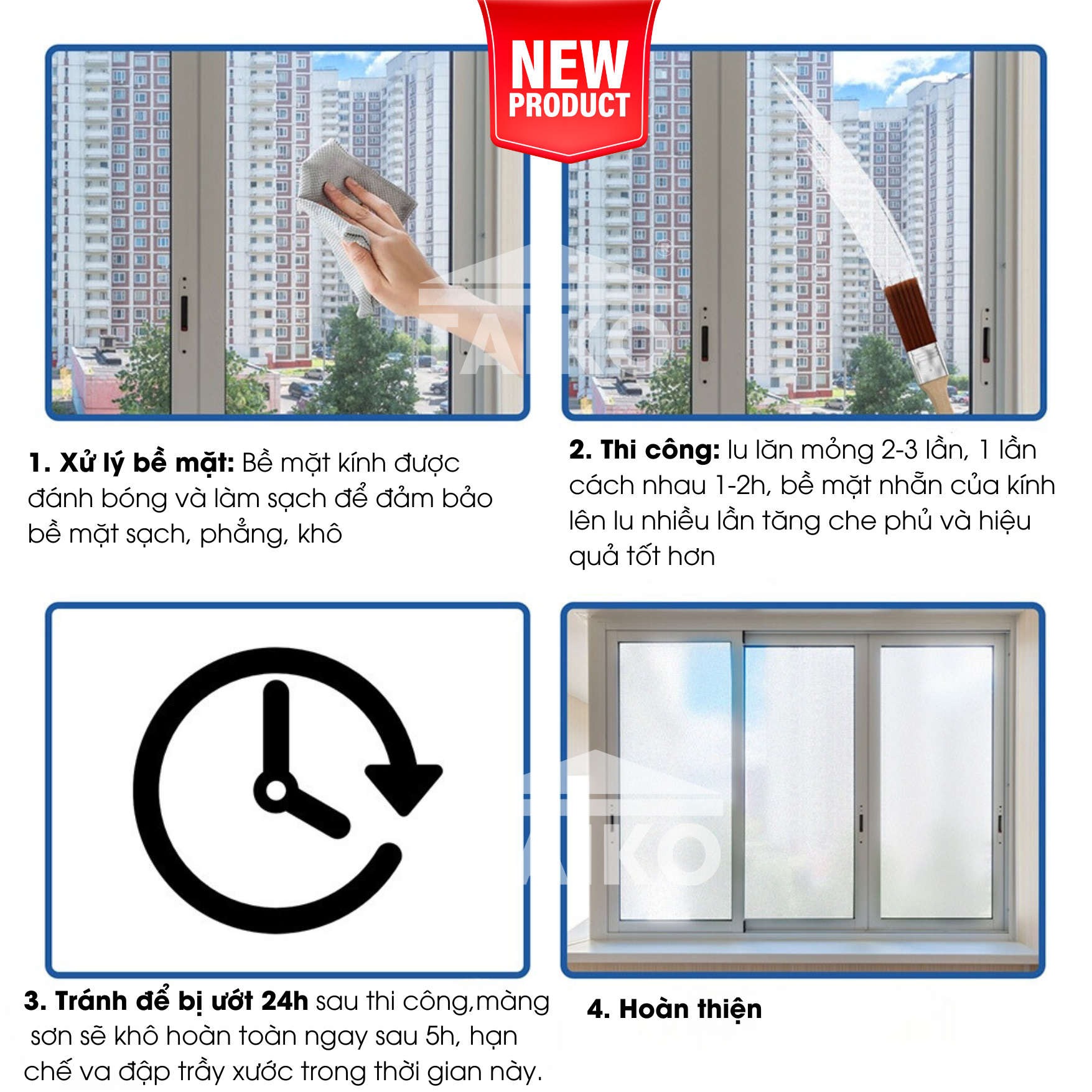 - Khi phủ sản phẩm lên bề mặt kính sẽ không nhìn rõ các vật phía sau tạo cảm giác riêng tư, che chắn ánh sáng mà vẫn giữ sự thẩm mỹ cho bề mặt kính.