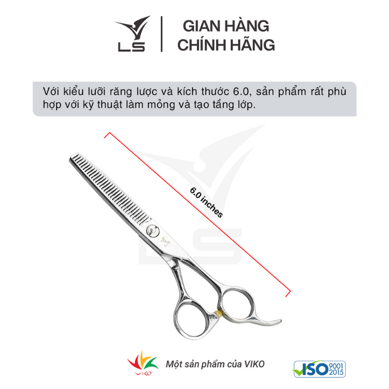 Với kiểu lưỡi thẳng và kích thước 6.0, sản phẩm rất phù hợp với các đường cắt thẳng (blunt cut). Dòng kéo cắt tóc cao cấp VLS luôn đảm bảo chất lượng (cắt không chạy