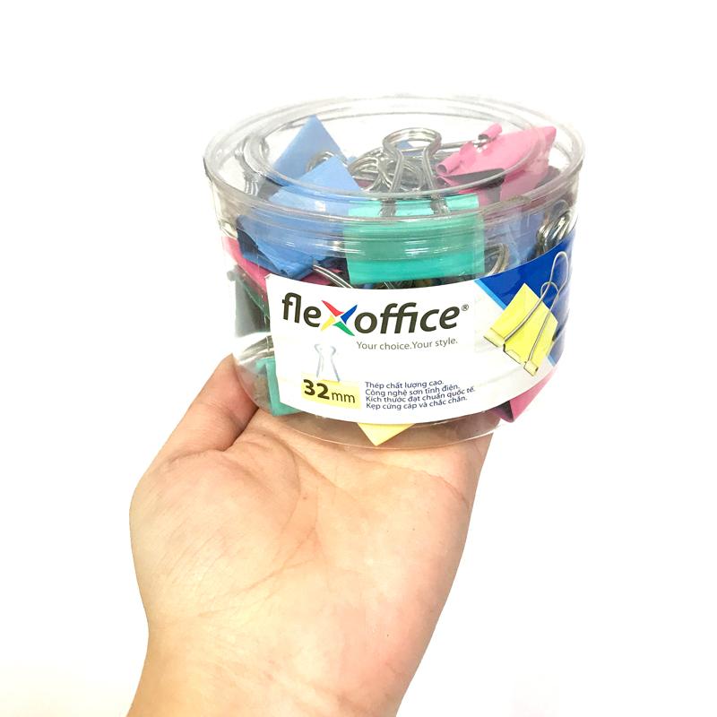 Kẹp Bướm Màu 41mm Flexoffice - FO-DCC05 (24 Chi Tiết)