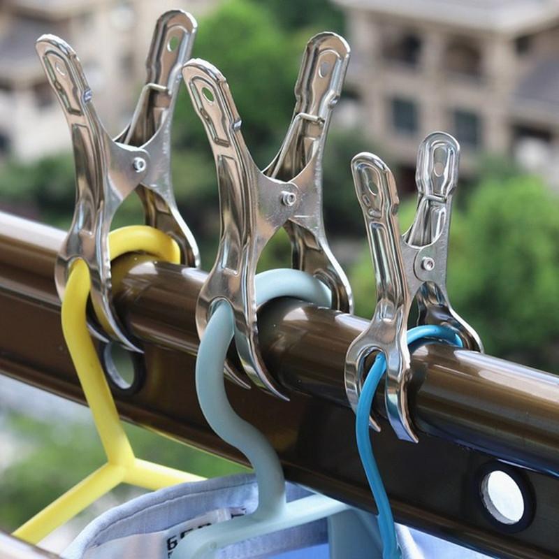 Kẹp Inox có thể dùng để treo quần áo, khăn, hoặc các vật dụng gia đình khác. Lực kẹp mạnh, không sợ rơi quần áo. Chất liệu thép không rỉ, không sợ rỉ sét, không