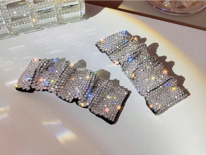 Kẹp tóc trắng đính đá sáng lấp lánh hình chữ nhật