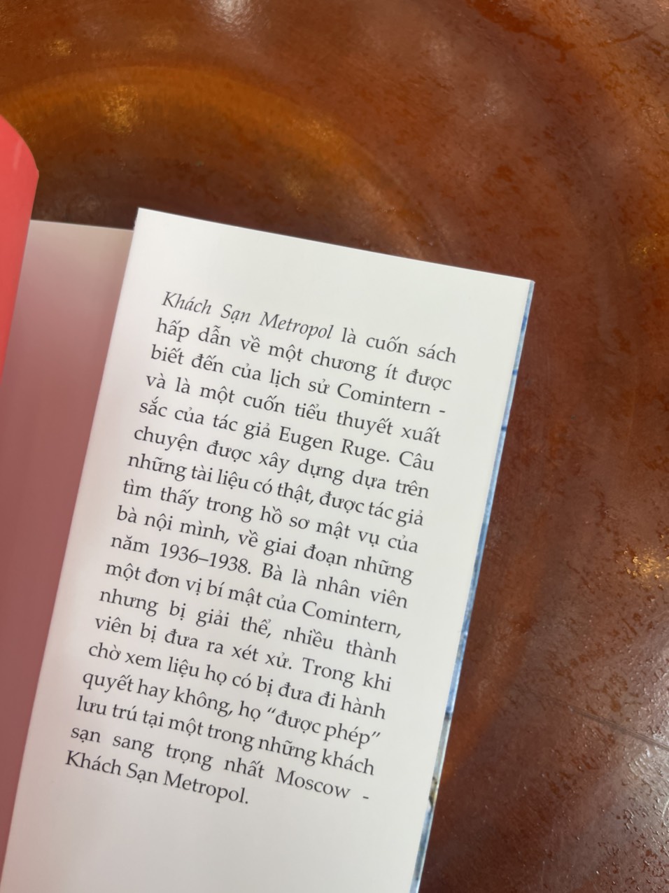 “Khách sạn Metropol” là cuốn sách hấp dẫn về một chương ít được biết đến của lịch sử Comintern – và là một cuốn tiểu thuyết xuất sắc của Eugen Ruge. Câu chuyện được xây dựng trên những tài liệu có thật, được tác giả tìm thấy trong hồ sơ mật vụ của bà nội mình, về giai đoạn những năm 1936 -1938. Bà là nhân viên một đơn vị bí mật của Comintern, nhưng bị giải thể, nhiều thành viên bị đưa ra xét xử. Trong khi chờ xem liệu họ có bị đưa đi hành quyết hay không, họ “được phép” lưu trú tại một trong những khách sạn sang trọng nhất Moscow – Khách sạn Metropol.