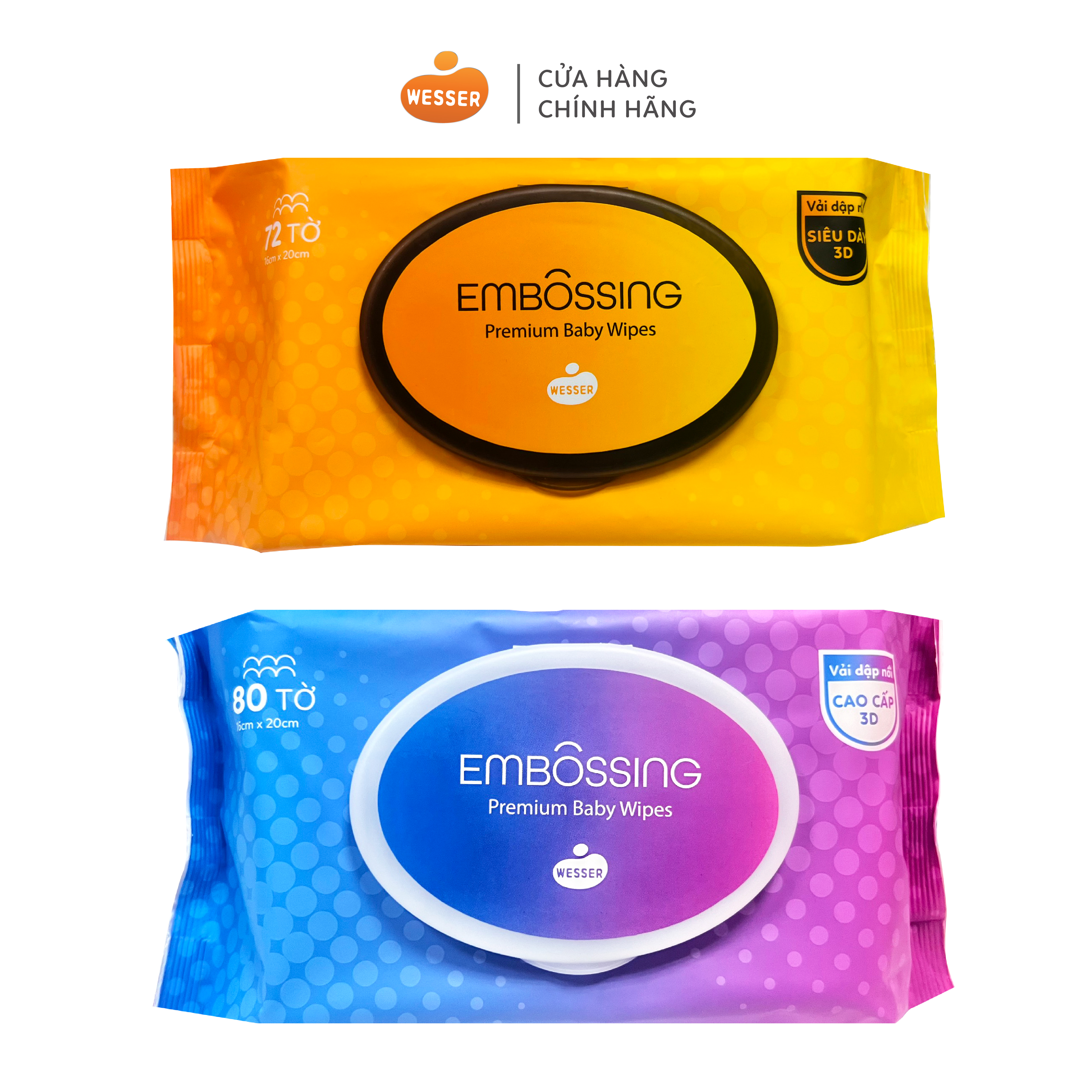 - Khăn ướt cao cấp Wesser với chất liệu vải không dệt được dập nổi nên rất dày dặn và mềm mại, chỉ với một tờ vẫn có thể vệ sinh cho bé thật sạch sẽ.