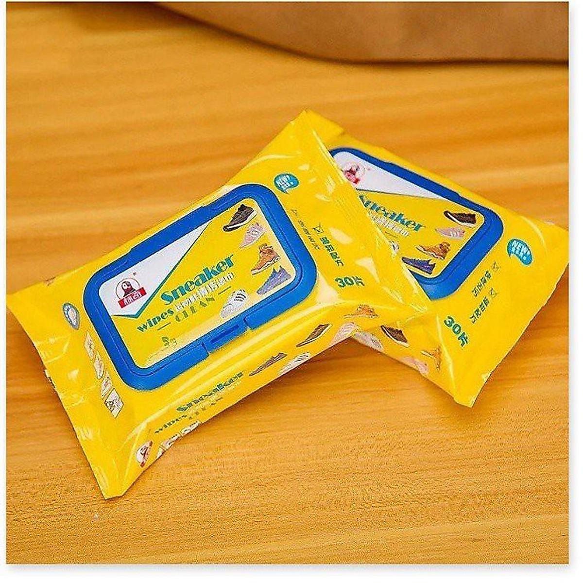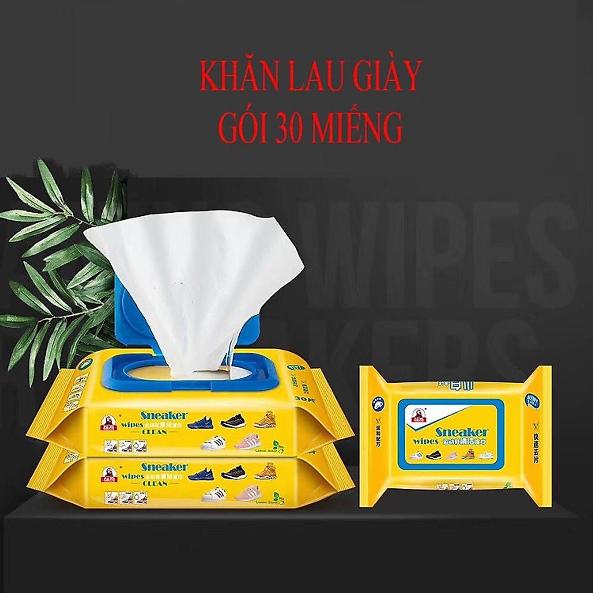 Gói 30 khăn giấy ướt lau giày thể thao, giày da, giày trắng, đế giày.