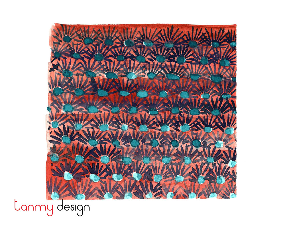 Vải lụa của chúng tôi được sản xuất tại địa phương trong điều kiện thuận lợi tại Việt Nam bởi các nghệ nhân lành nghề. Các mẫu toàn bộ được in bằng tay. Lụa satin