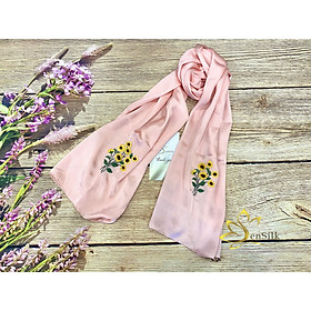 Khăn Lụa Thêu Hoa Hướng Dương SenSilk loài hoa tình yêu luôn hướng về phía mặt trời nên thường là biểu tượng của lòng trung thành, chung thủy sâu sắc, sự kiên định đó cũng biểu thị cho sức mạnh, uy quyền, sự ấm áp…