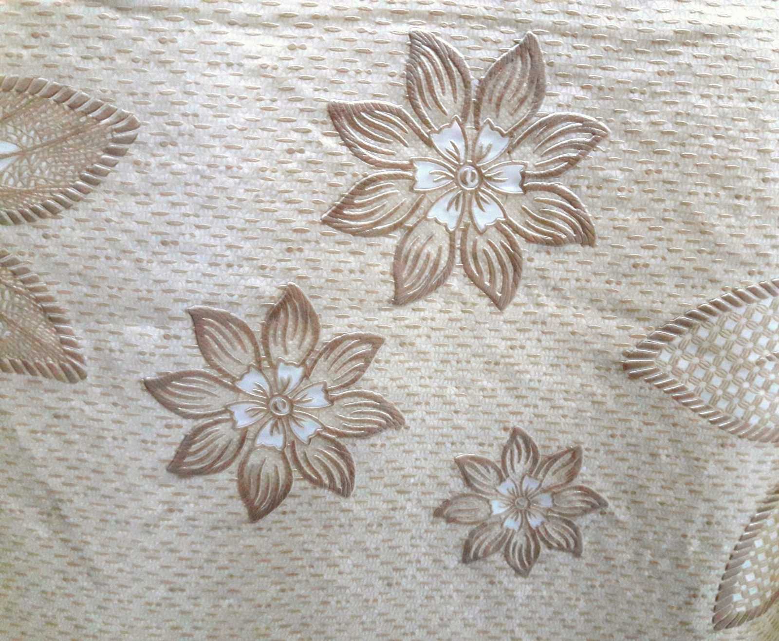 ✨Khăn Trải Bàn PAULEE PWL 241 (147cm x 230cm) hoa văn nổi, ánh kim vàng, nền kem nhạt, nhựa PVC dẻo-không thấm nước