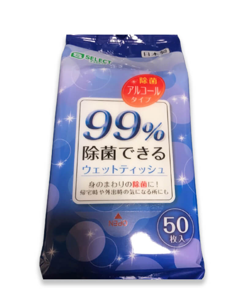 Khăn ướt khử trùng 99% S Select Nhật Bản (gói 50 miếng)Khăn ướt khử trùng 99% S Select Nhật Bản (gói 50 miếng)