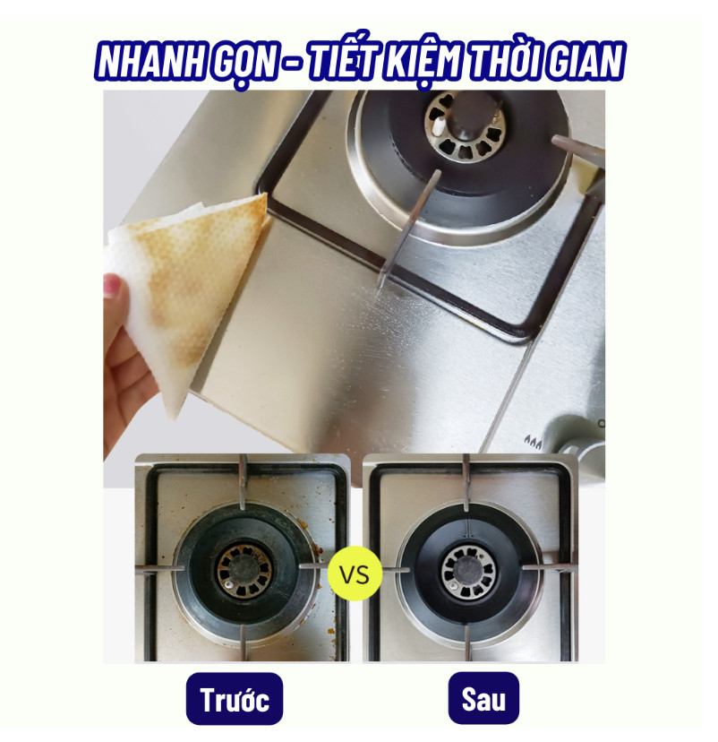 Khăn lau bếp và nội thất đa năng giúp bạn làm sạch các vết bẩn trên bếp, bàn ăn nhanh chóng. Sản phẩm dùng được trên mọi bề mặt như bàn kiếng, cửa kiếng, bề
