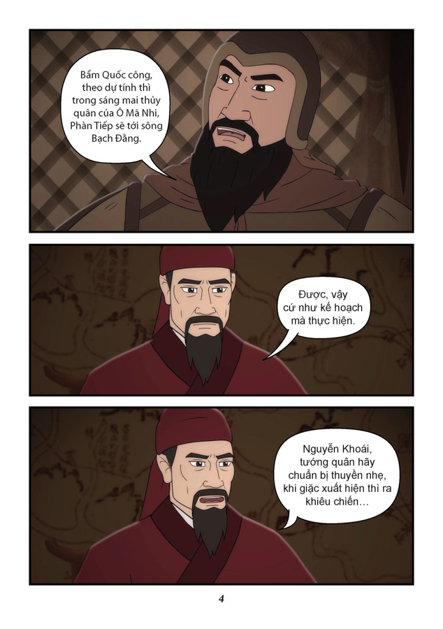 Bộ sách “Truyện tranh lịch sử Việt Nam – Khát vọng non sông” gồm hàng trăm tập, giới thiệu ngắn gọn, sinh động những truyền thuyết đầy tính nhân văn và những sự kiện, những nhân vật nổi tiếng trong lịch sử hàng nghìn năm của dân tộc Việt Nam. Đại chiến Bạch Đằng Giang 1288, quân Nguyên rơi vào thế trận mai phục của quân ta – Bằng mưu lược và sự tính toán tài tình, Hưng Đạo Vương Trần Quốc Tuấn vận dụng lợi thế của tự nhiên bày ra thế trận trên sông Bạch Đằng. Trận chiến thể hiện nghệ thuật quân sự tuyệt vời của ông cha ta trong việc giữ nước trước kẻ thù mạnh và là bài học học lớn trong việc dụng binh và chiến tranh toàn dân của dân tộc.