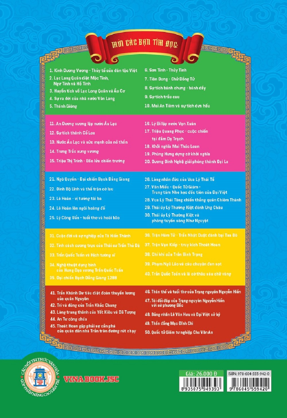 Mua tại TiktokBộ sách “Truyện tranh lịch sử Việt Nam – Khát vọng non sông” gồm hàng trăm tập, giới thiệu ngắn gọn, sinh động những truyền thuyết đầy tính nhân văn và những sự kiện, những nhân vật nổi tiếng trong lịch sử hàng nghìn năm của dân tộc Việt Nam. Văn Miếu Quốc Tử Giám-Trung tâm Nho học đầu tiên của Đại Việt, là quần thể di tích hàng đầu của thủ đô Hà Nội, được vua Lý Thánh Tông xây dựng năm 1070 để thờ Khổng Tử, là nơi đào tạo hàng nghìn nhân tài cho đất nước, biểu tượng cho nền khoa cử thời phong kiến ở Việt Nam. Ngày nay, giá trị của 82 tấm bia đá ghi tên các tiến sĩ tại Văn Miếu-Quốc Tử Giám được UNESCO chính thức công nhận là Di sản tư liệu thế giới.