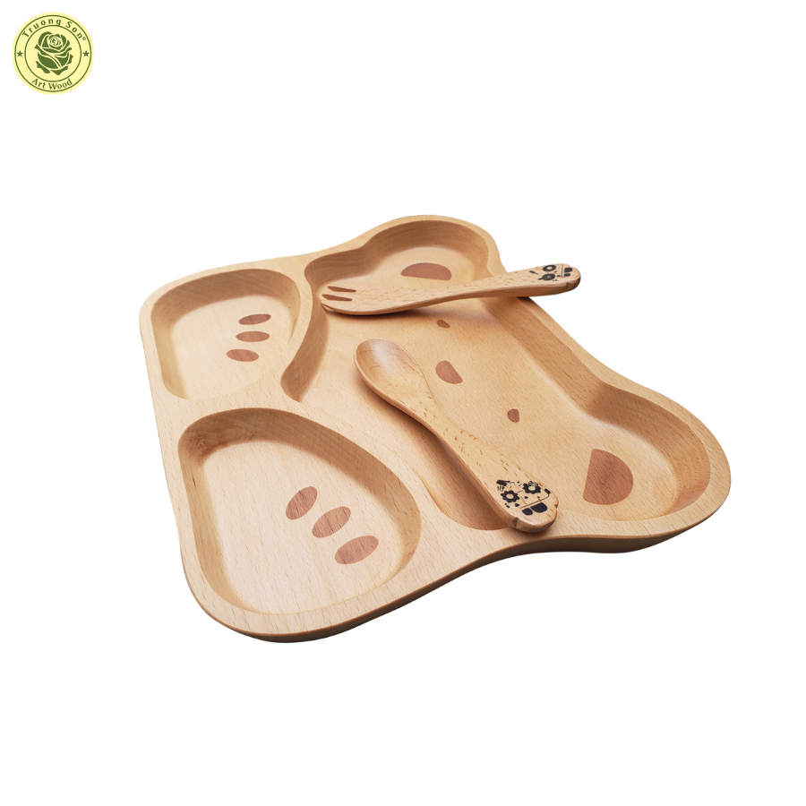 ✨Khay Ăn Cho Bé Hình Mặt Gấu Bằng Gỗ Beech - Đồ Gỗ Nhà Bếp Thương Hiệu Trường Sơn