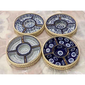đặt bằng khung kim loại mạ vàng Đĩa bằng gốm sứ cao cấp Thiết kế tinh tế, sang trọng Thích hợp đựng bánh, hoa quả hay mứt tết.