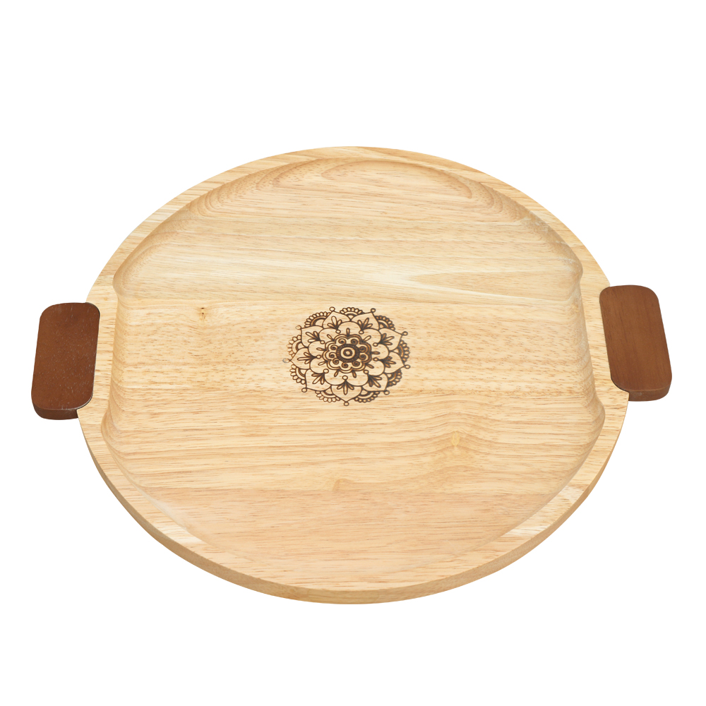 Khay đĩa tròn có tay cầm | Gỗ Đức Thành 22261 | Sự hoàn hảo cho trang trí và phục vụ