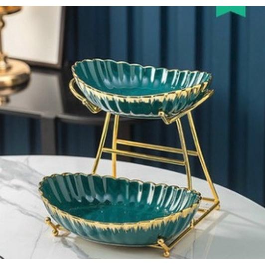 Khay đựng hoa quả, bánh kẹo, mứt Tết 2 tầng, 3 tầng bằng gốm sứ kèm đế kim loại mạ vàng cao cấp.