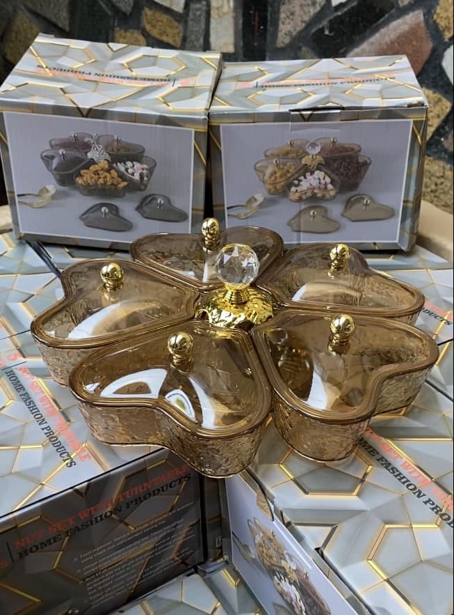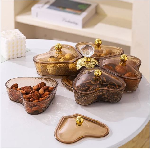 ✨Khay đựng mứt bánh kẹo xoay 5 ngăn hình trái tim, khay đựng trái cây sang trọng