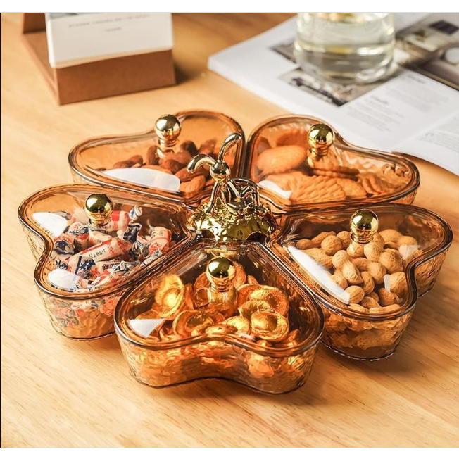 Khay đựng hoa quả bánh kẹo Tết phong cách châu Âu, hộp đựng mứt trang trí Tết 4-5 cánh xoay 360 độ