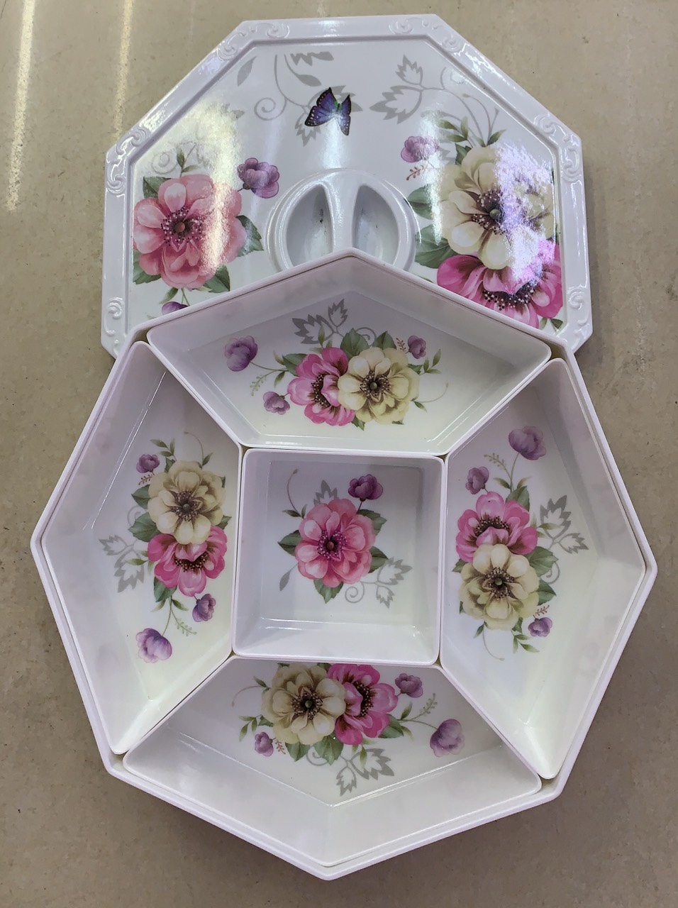 Khay đựng mứt nhựa phíp 5 ngăn 31cm - Khay có 5 ngăn, các ngăn nhỏ này có thể nhấc rời từng khay ra ngoài - Khay có nắp đậy kín đáo, đảm bảo vệ