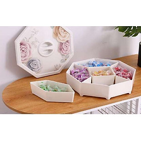 - Khay đựng bánh kẹo tết gồm có tổng 5 ngăn nhỏ CÓ THỂ TÁCH RỜI xinh xắn nằm ẩn trong hộp lớn giúp bạn bảo quản mứt bánh luôn được thơm ngon và vệ sinh.