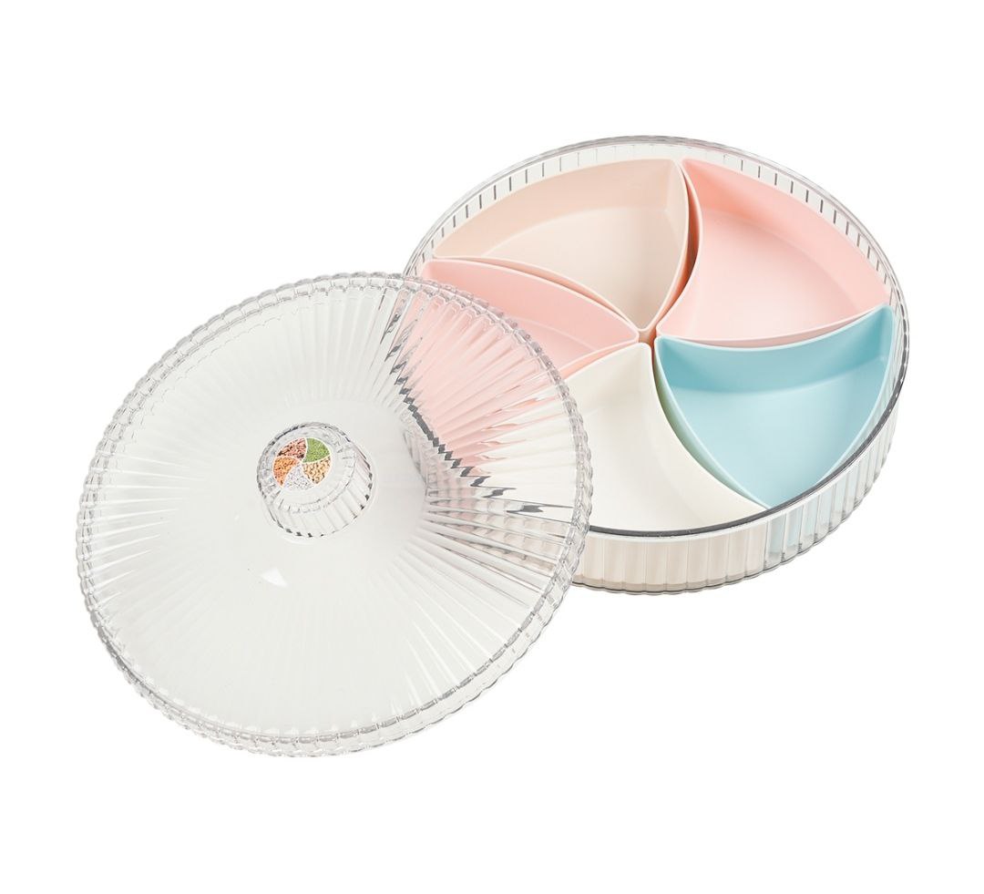- Khay đựng mứt kẹo mẫu mới nhất năm nay 5 ngăn chính có nắp đậy