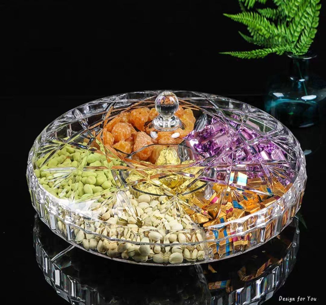 Khay đựng mứt Tết NHIỀU NGĂN bằng Nhựa Acrylic Ngày đầu xuân năm mới hẳn ai cũng mong muốn cho căn nhà của mình thêm phần mới mẻ, trang hoàng. Vậy nên bên cạnh việc trang trí nhà cửa, thì việc chuẩn bị những món đồ nhỏ như khay mứt tết chẳng hạn cũng không kém phần quan trọng. Bộ Khay đựng mứt Tết 6 ngăn bằng Nhựa Acrylic vô cùng trang nhã và đẹp mắt. Nắp đậy kín ngăn cho gió, côn trùng không bay vào được… đảm bảo cho món mứt luôn thơm ngon. Chất liệu nhựa cao cấp cho bàn trà, không gian phòng khách, làm việc… tiện nghi sang trọng bậc nhất.